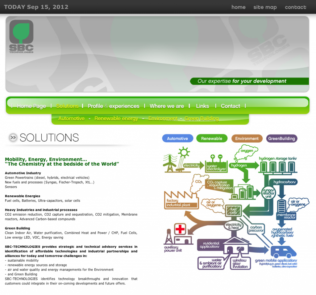 Site vitrine, presentant SBC-Technologies, société d’innovation & technologies vertes.