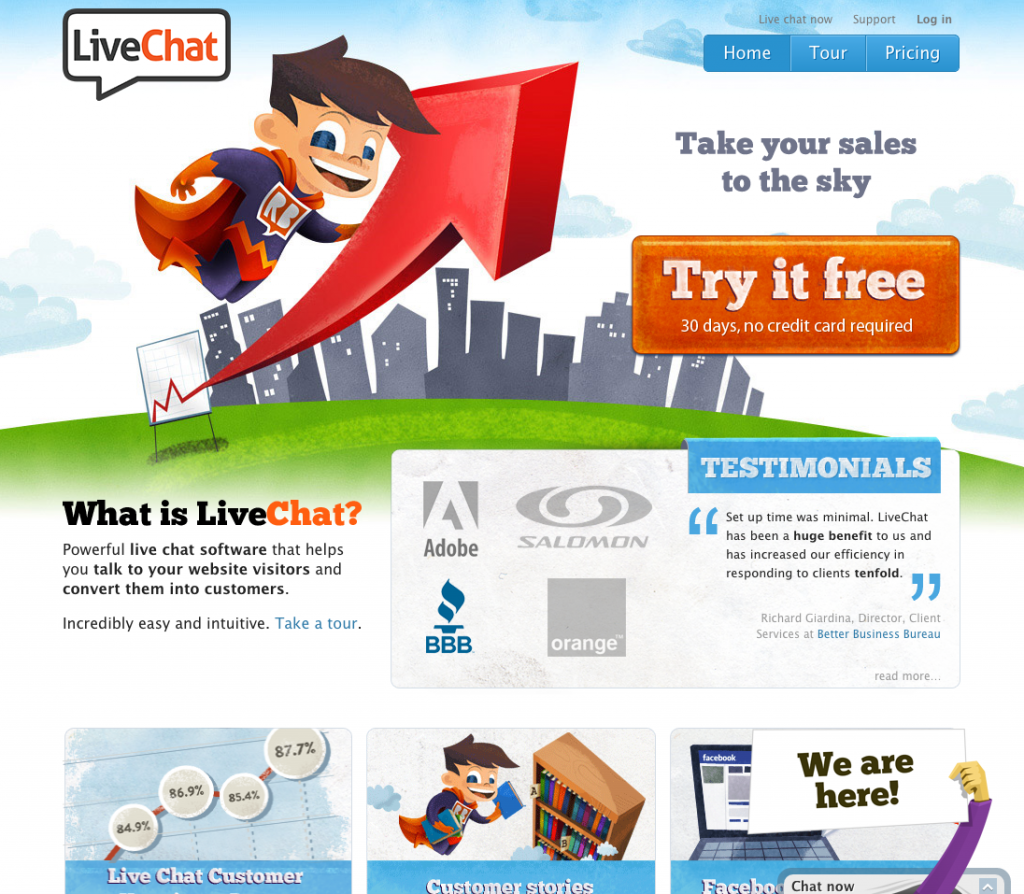 Nous croyons que chaque entreprise à un site Web mérite et a besoin d’outils pour communiquer avec ses clients. Chat comble lorsque les appels téléphoniques coûteux et e-mails ne sont pas assez lents.Avec déclencheurs uniques d’invitation de chat et le compteur de conversion des ventes, nous faisons LiveChat solution le chat seulement sur le marché conçu pour aider les entreprises à gagner de l’argent, et pas seulement à communiquer.